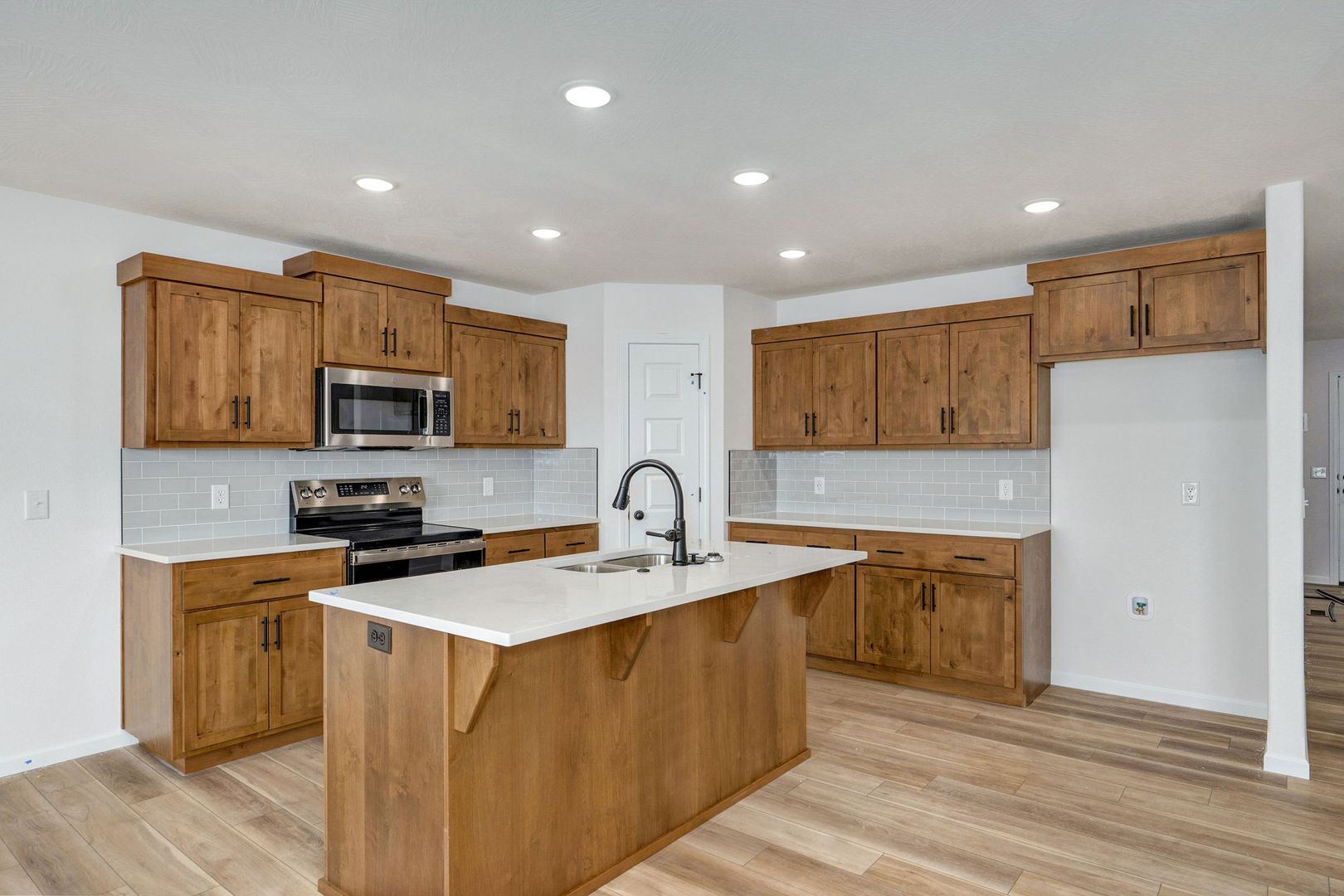- Gourmet Kitchen with quartz countertops, large island, stainless steel appliances, and custom cabinetry