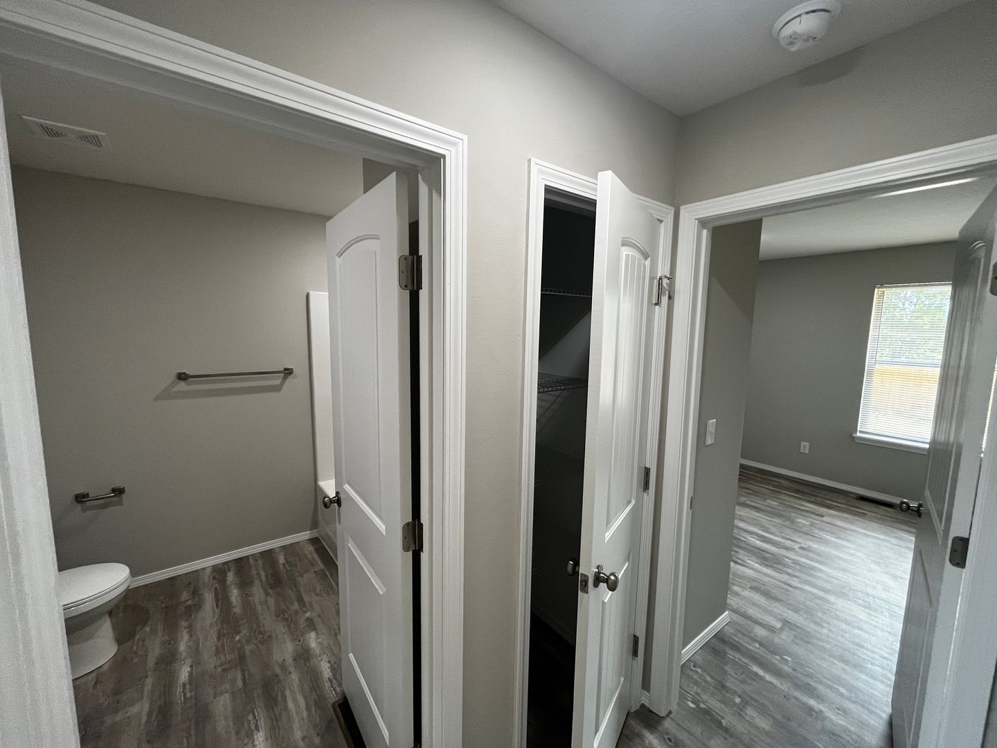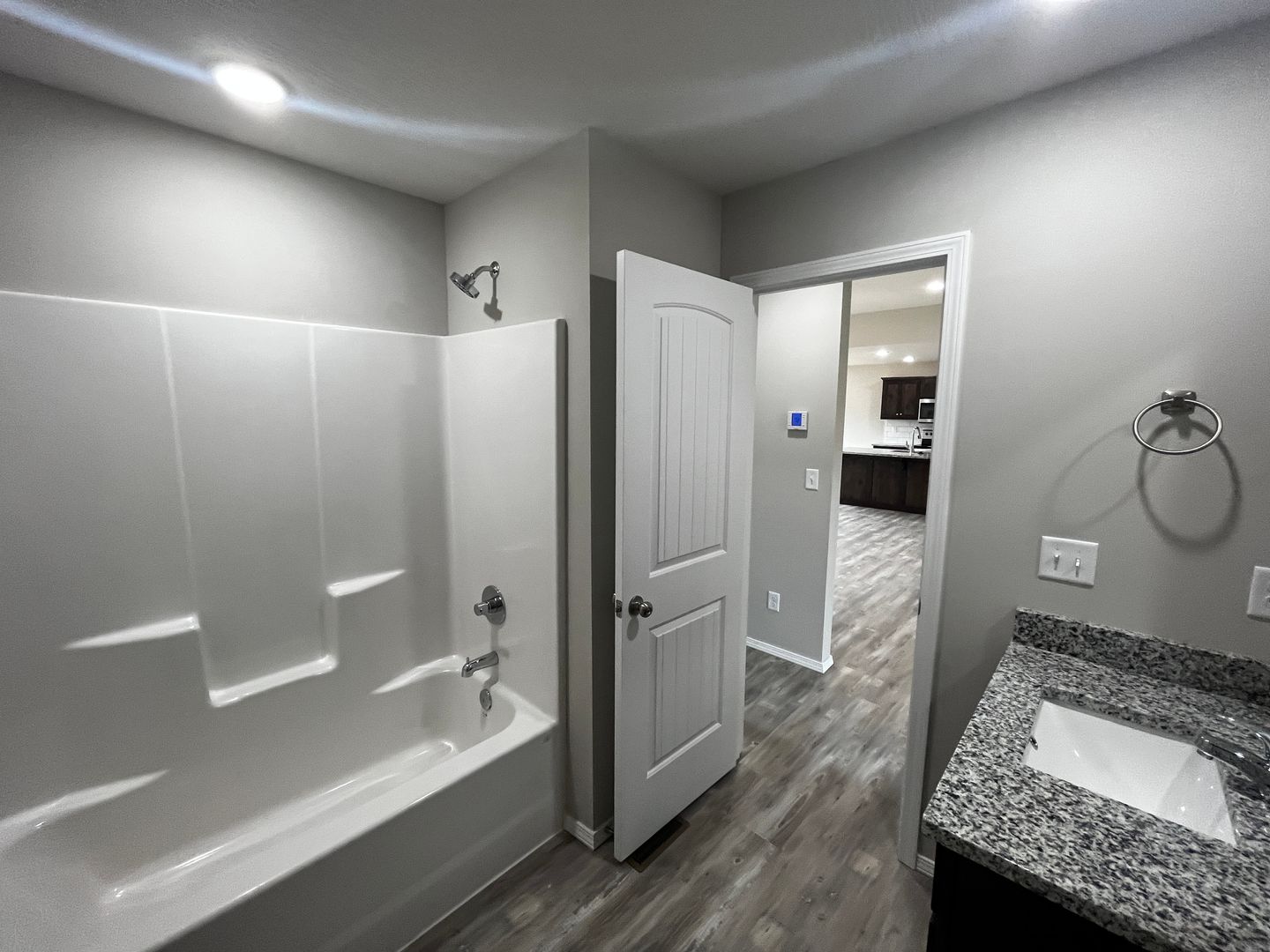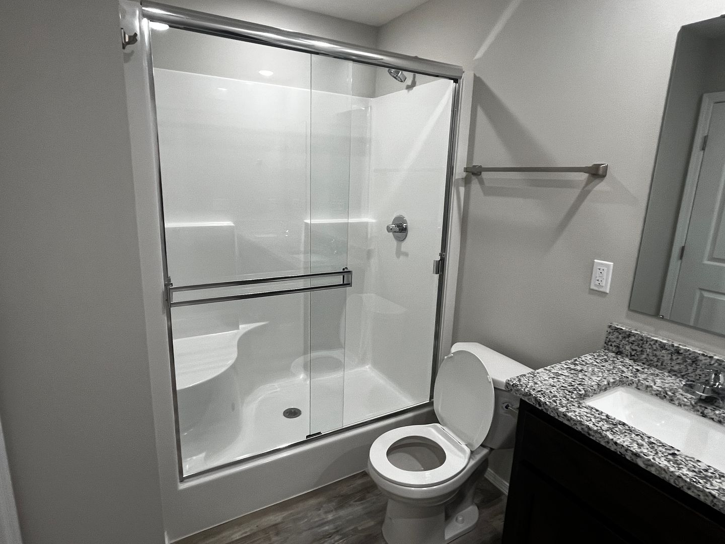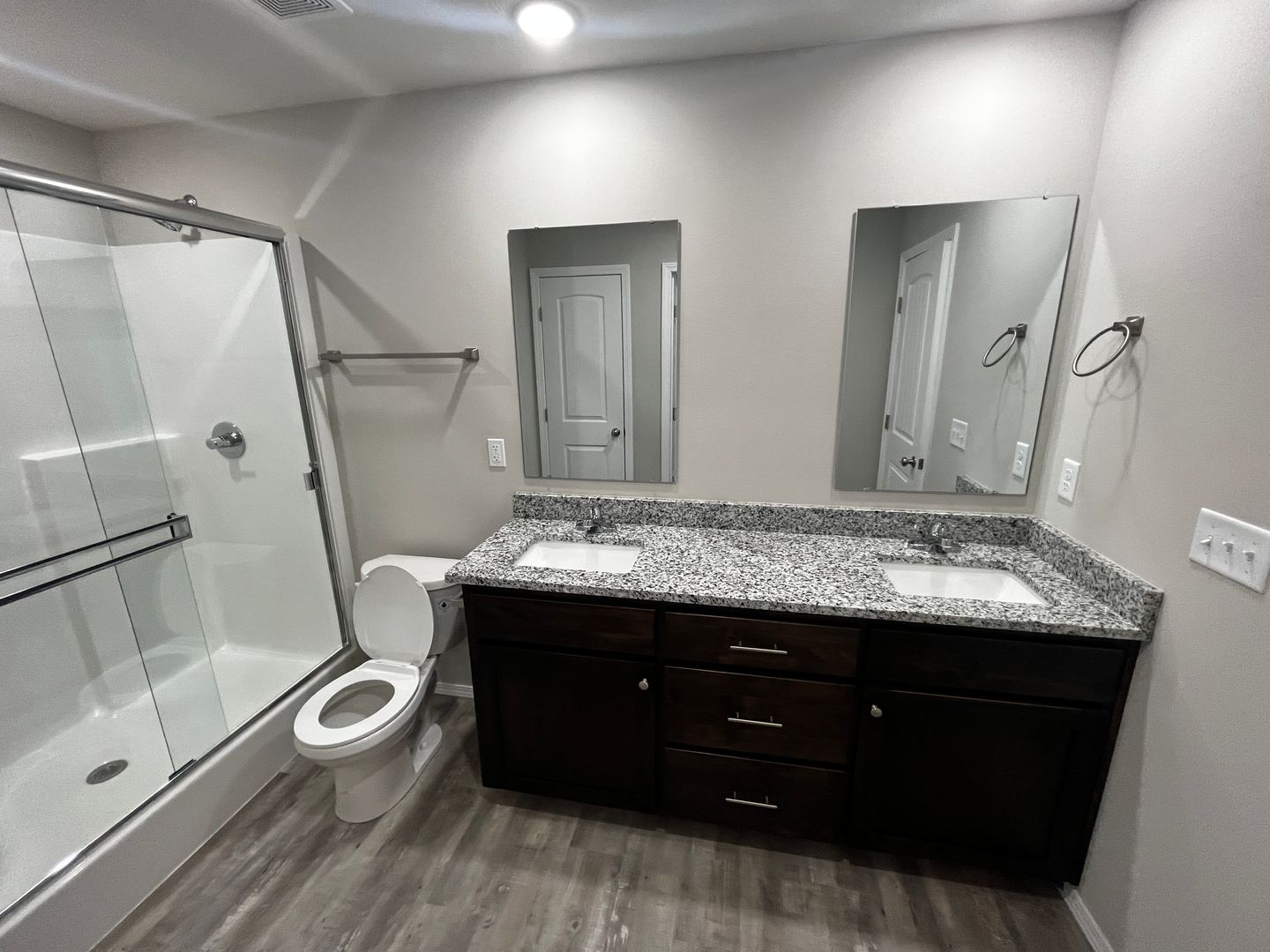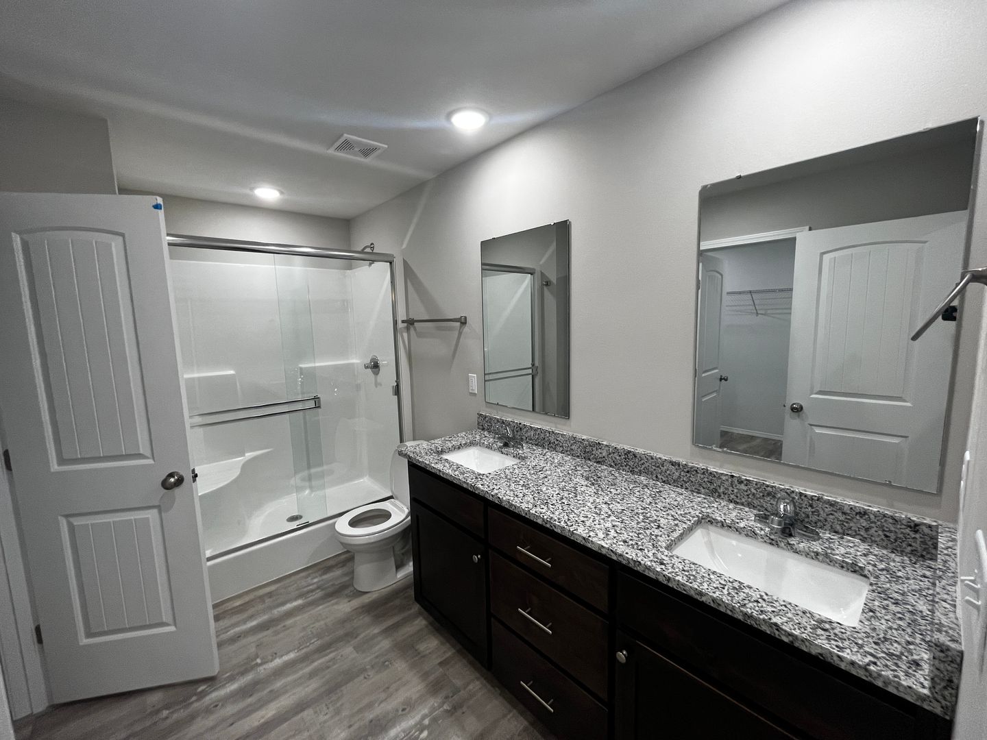 The master offers privacy…including raised vanity with double sinks, walk-in shower, walk-in closet and granite countertops.