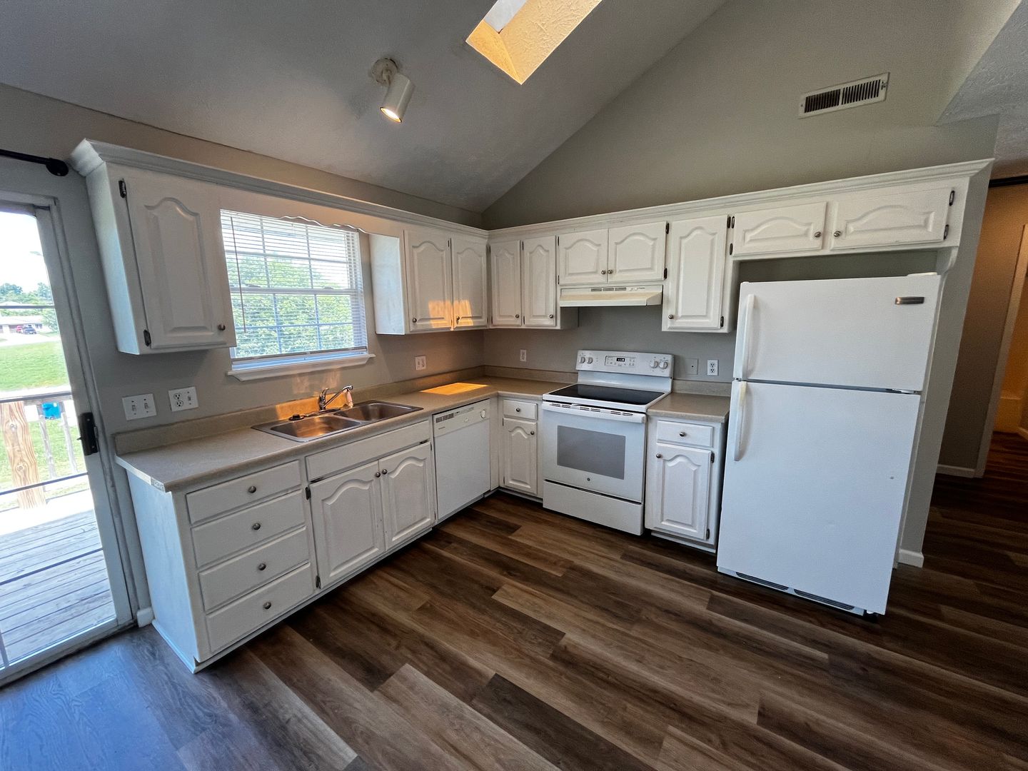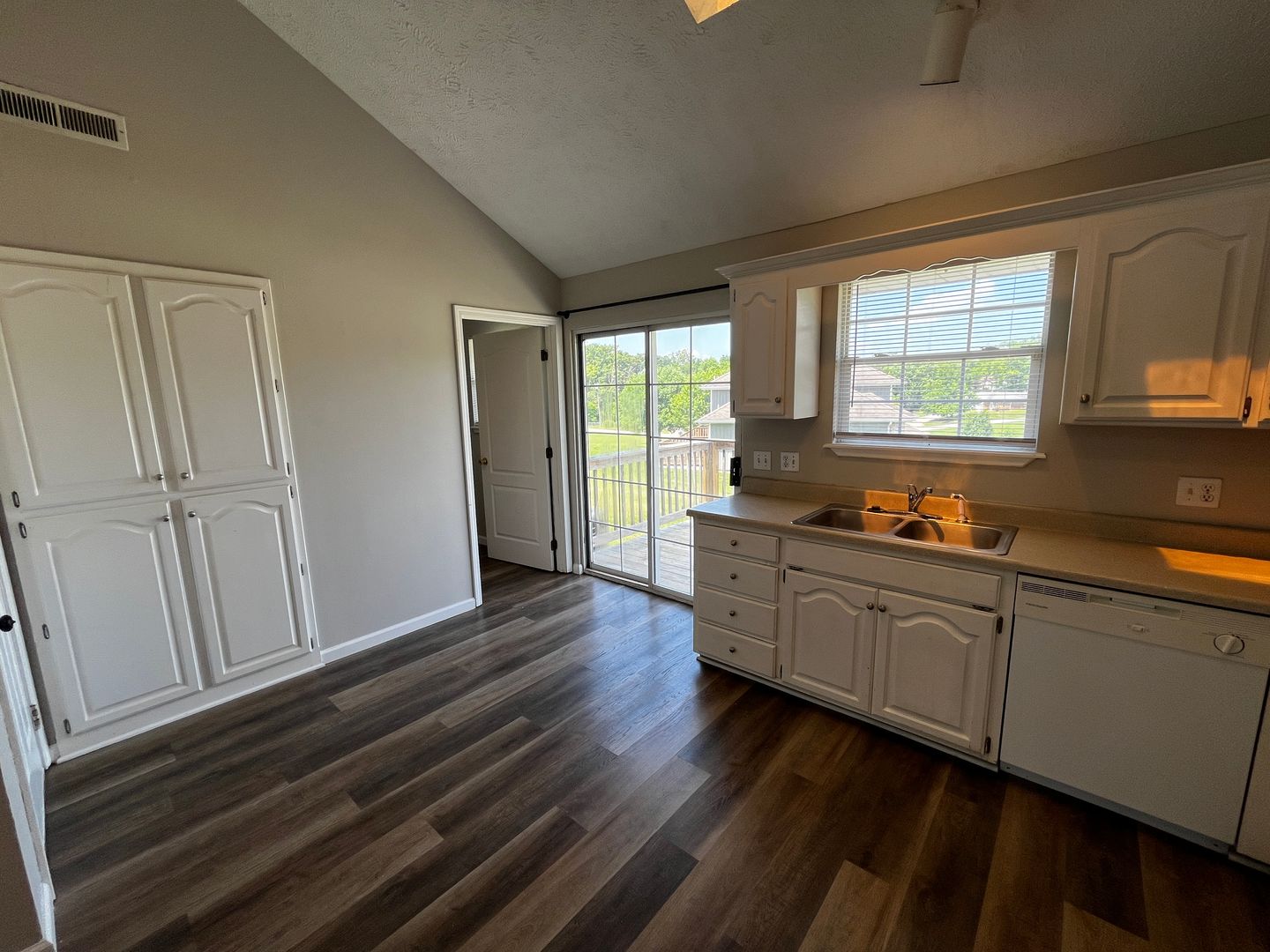 The open-concept living and dining area creates a bright, welcoming space ideal for everyday living or entertaining. The bright kitchen offers plenty of cabinet storage, making meal prep and organization easy.